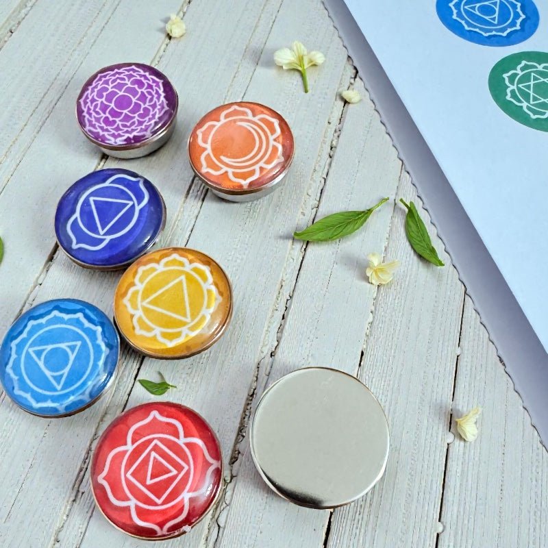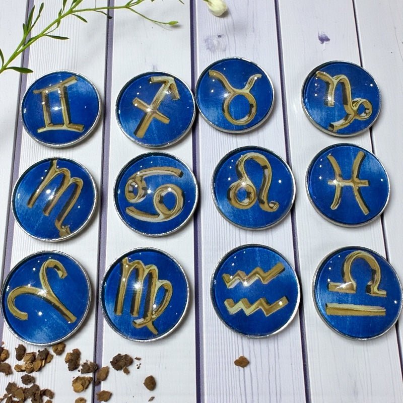 Chakra & Zodiac Reading Coins | 25mm Glass-Top | Charm Casting Divination
